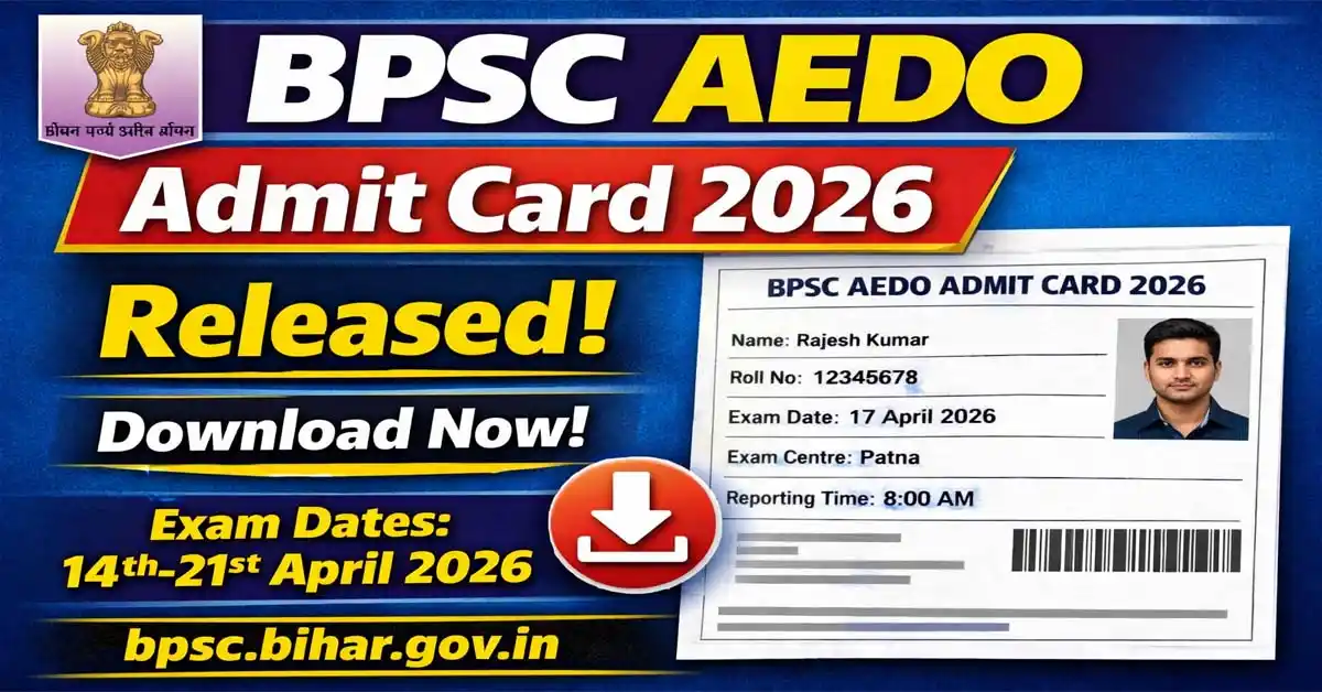 The Bihar Public Service Commission (BPSC) has released the Exam Admit Card of Assistant Education Development Officer (AEDO) posts. Candidates who have applied for AEDO recruitment can download their admit card. The exam will be conducted from 14 April 2026 to 21 April 2026.