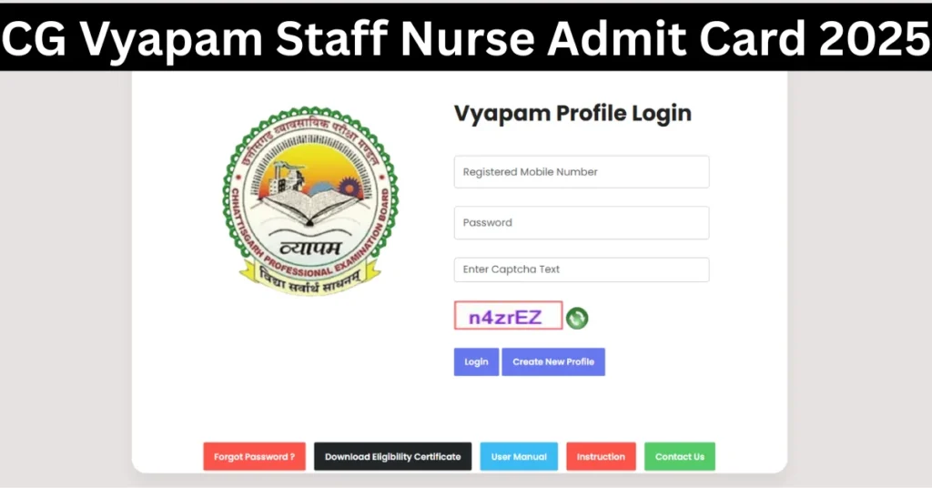 - Find and click on “CG Vyapam Staff Nurse Admit Card 2025”.