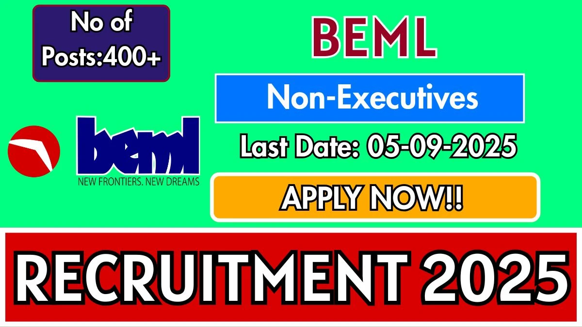 BEML Non-Executives Recruitment 2025 – Apply Online for 440 Posts (Last Date - 5 September 2025)