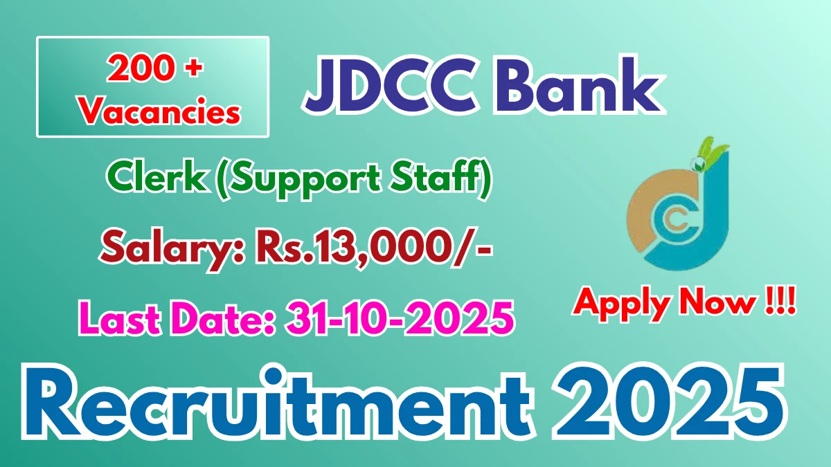 JDCC Bank Clerk Recruitment 2025 – Apply Online for 220 Posts Last Date - 31 October 2025