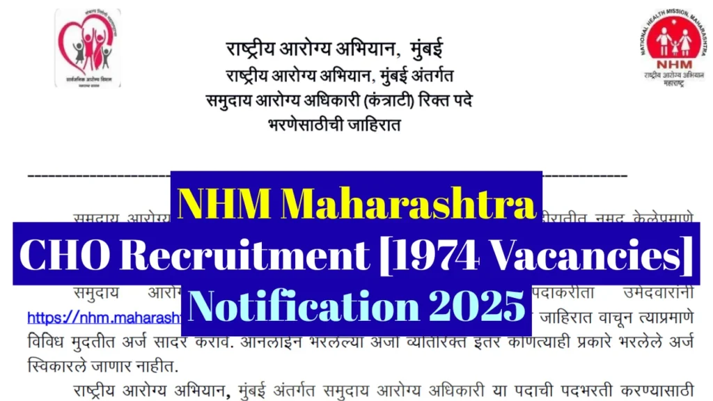 NHM Maharashtra CHO Recruitment 2025 – Apply Online 1974 Posts Last Date - 14 November 2025