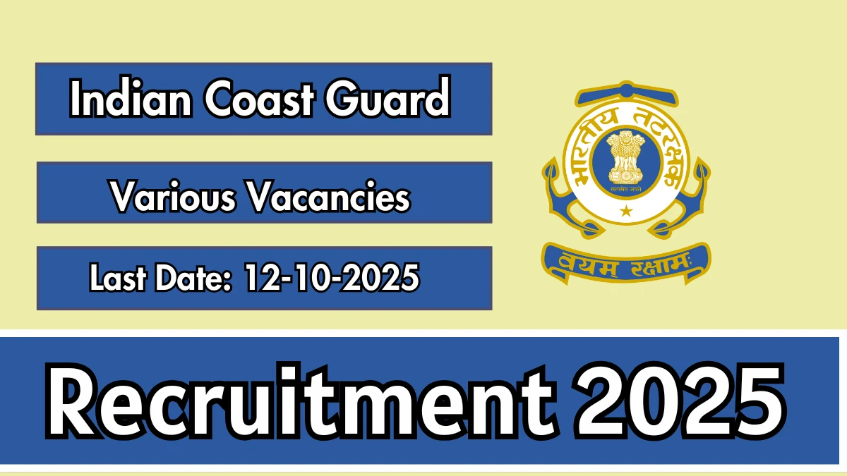 The Indian Coast Guard has released the official notification for the recruitment of Store Keeper, Lascar and Other Posts. Eligible candidates can apply offline from 13 September 2025 to 12 October 2025 through the official website joinindiancoastguard.cdac.in.